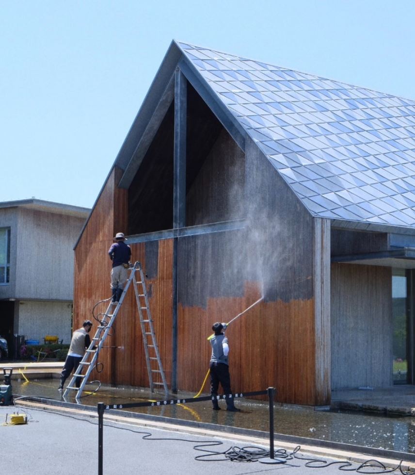 실제로 '제주 방주교회'(이타미 준 설계)의 외벽 목재 역시