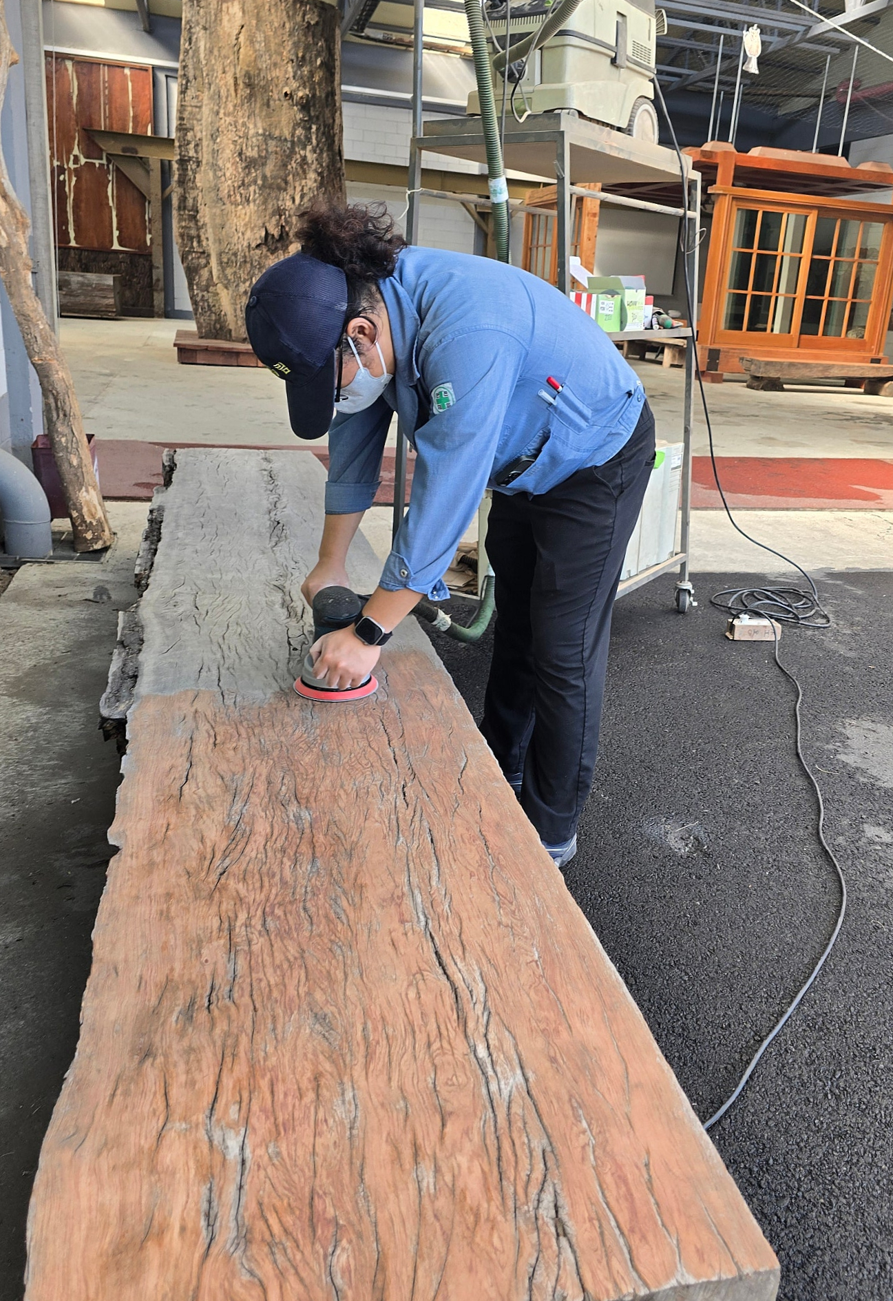 오랜시간 밖에 있었던 원목벤치를 샌딩했을 때,